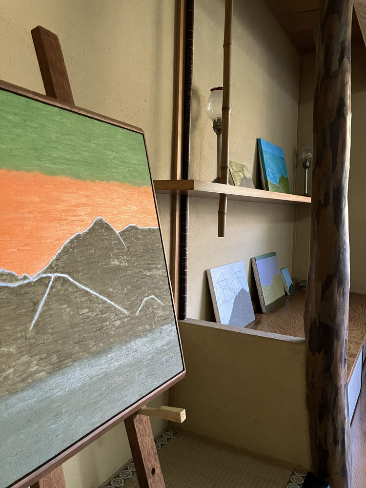 山の絵を展示します。山の絵の中に、現実の世界と心の世界を表現しています。絵、山を眺めてゆっくりする時間を提供できればと思ってます。