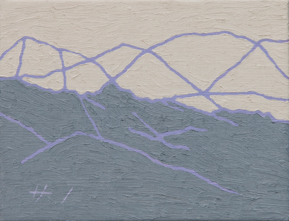 球状の線画 2026-02-10 山の絵 mountains no.2530/2025/oil on canvas/F0 h140 x w180 mm 家の窓から山を見て描いています。電線が増えました。これがなければどんなにいいだろうと思います。電気やインターネットの線ですね。自分もその恩恵を受け電線を引き込んでこうして投稿してるので、誰かの景色を邪魔しているわけですが。みんな好き勝手。この電線も、誰かがそんな人の欲望を利用して地球上に線を引いて制作中の作品、球状の線画なのかも知れませんね。
